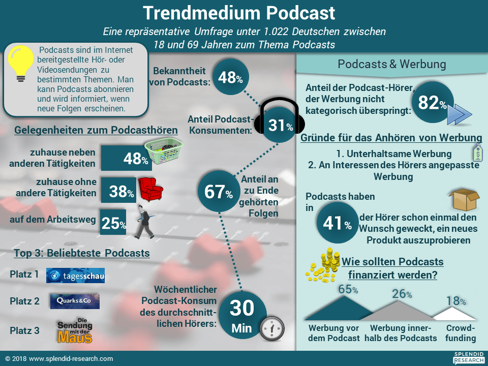 Die Wirtschaftswoche berichtet sogar, dass fast jeder dritte Deutsche Potcasts höre (Sonla Kewan, 03.03.2019, Wiwo).