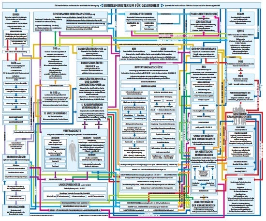 Einem Slide in der Veranstaltung widmete ich meine besondere Aufmerksamkeit. Dort abgebildet waren Institutionen, Kassenärztliche- und Kassenzahnärztliche Vereinigungen, Verbände jedweder Erbringenden von Leistungen sowie die sogeannnten Kostenträger (z.B. Krankenkassen, Renten- und Unfallversicherungsträger) mit wiederum ihren Verbänden.